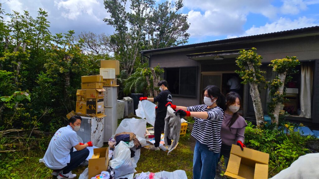 青年部のメンバーは、家屋内に積み重なっていた物品の整理を丁寧に進め、清潔で快適な居住空間を取り戻す支援を行いました。作業後には共に感謝の祈りを捧げ、喜びを分かち合う時間を持つことができました。